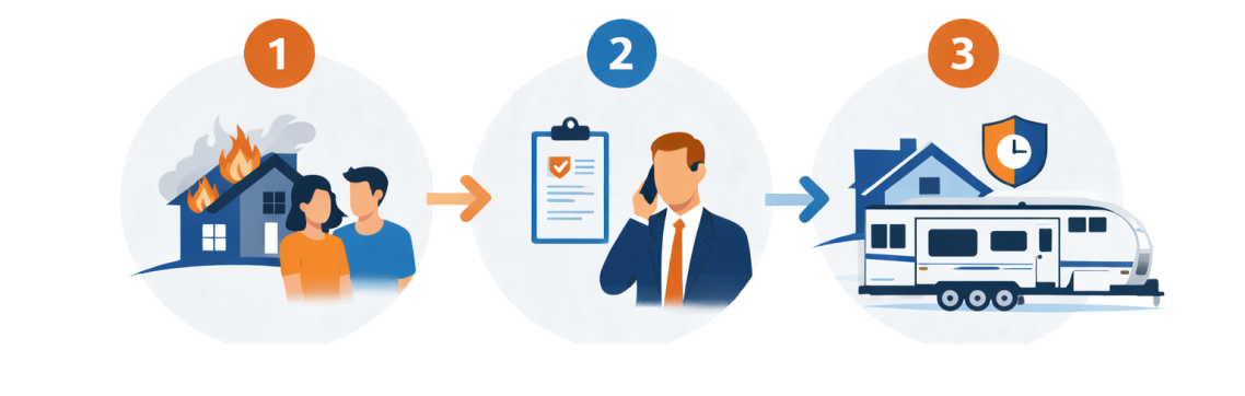 A house fire can make your home uninhabitable in an instant. When displacement occurs, Additional Living Expense (ALE) or Loss of Use coverage may apply. Temp Insurance Housing provides on-site temporary housing, allowing families to remain close to their property while repairs are underway.